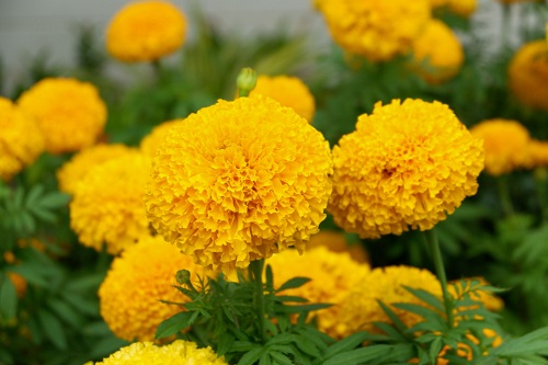 Their height varies from 0.1 meters to 2.2 meters. The flowers blooming in this annual plant range in colors such as yellow, orange, white, and golden. A maroon-colored highlight is evident in a few specimens of marigold.