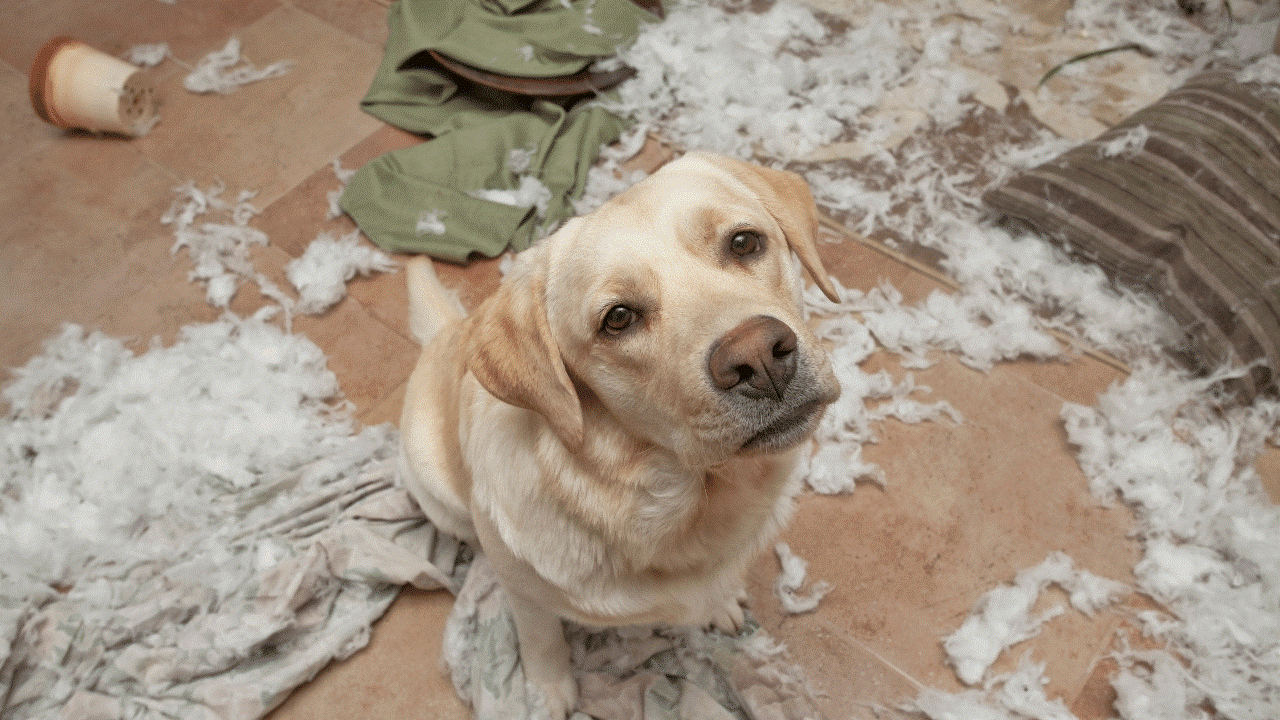 Some owners have despaired at behaviors such as destructive chewing of items as diverse as sofas, expensive clothing, and even their dog beds.  Sometimes, a previously clean dog has started fooling around the house.