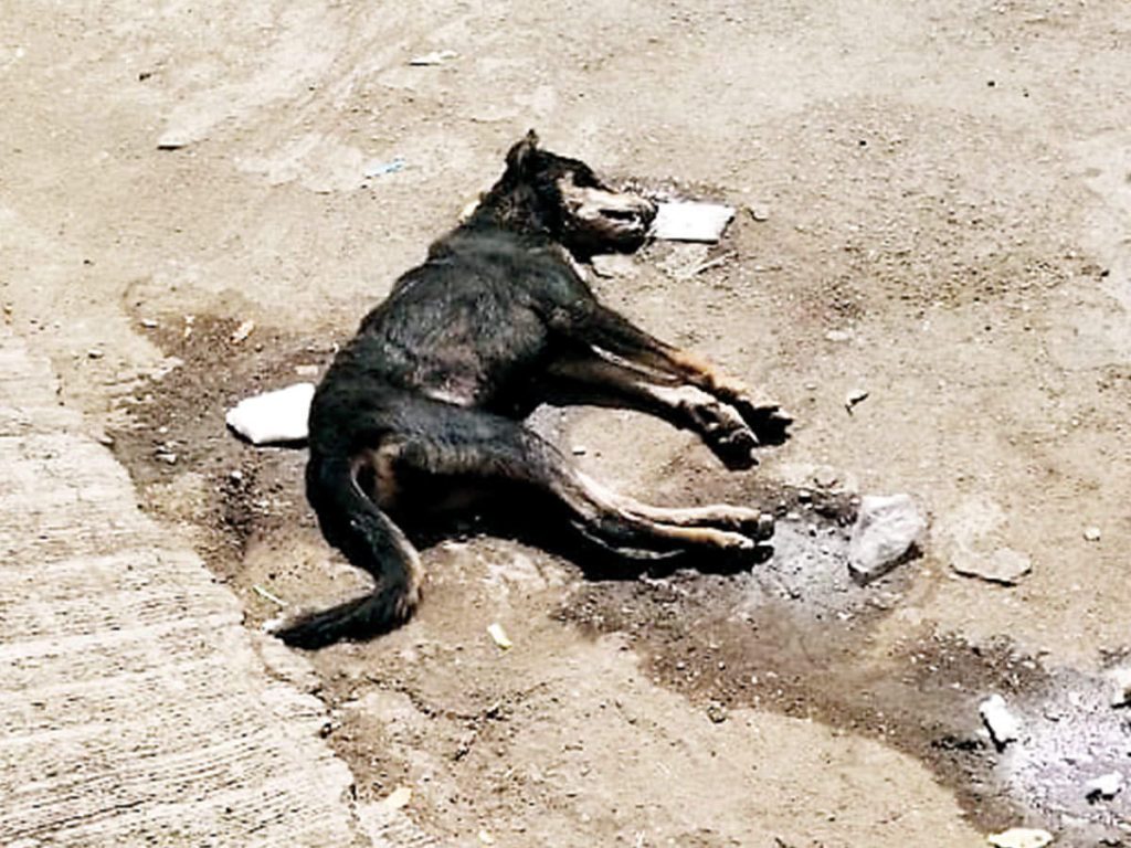 A stray dog was beaten to death by angry residents of a locality in the Jail Road area when it