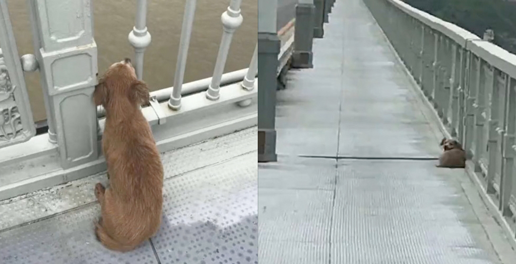 A loyal dog waited on a bridge for four days after watching its owner jump into the river. People on