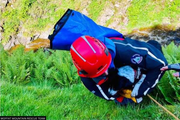 Dog Rescued After Plunging 60m Down Waterfall Near Moffat - Moffat Mountain Rescue team