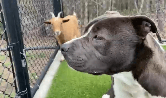 RALEIGH, N.C. (WTVD), There is a duo staying at the Wake County Animal Center. A dog and a goat are sharing a kennel and are snapped by staff cuddling them.