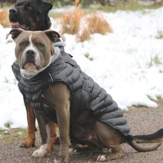 - Dog coat with a reflective harness.