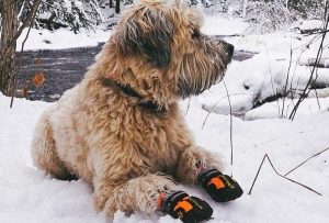 Even if your dog is a breed with extra fur on their feet, they need protection, especially in the snow. Provide a foot covering to avoid frostbite and trim the hair on top of their feet and in-between toes regularly.