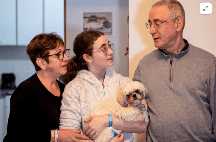 Mia and her mother, Gabriela, were visiting family in Kibbutz Nir Yitzhak when they were taken hostage by Hamas during its killing spree through southern Israel on Oct. 7, leading to the conflict with the Palestinian Islamist group in Gaza. As part of a swap for Palestinian prisoners, the mother, daughter, aunt, and dog were released, but Mia’s uncle and her aunt’s partner remained in captivity.