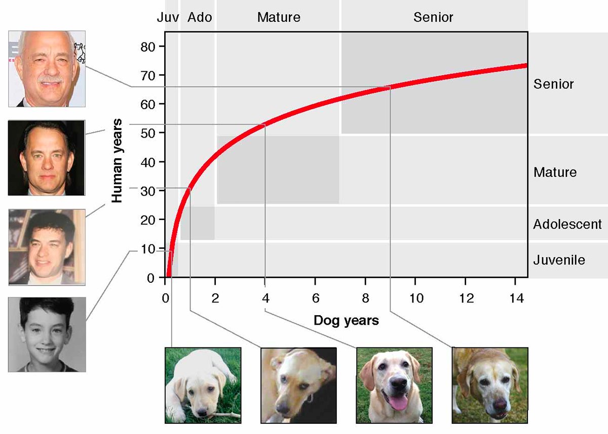 The team says the work now needs to be repeated in other breeds of dog. But, they say, for young and old dogs, the age relationship seems to reflect the times at which humans and dogs experience particular milestones.