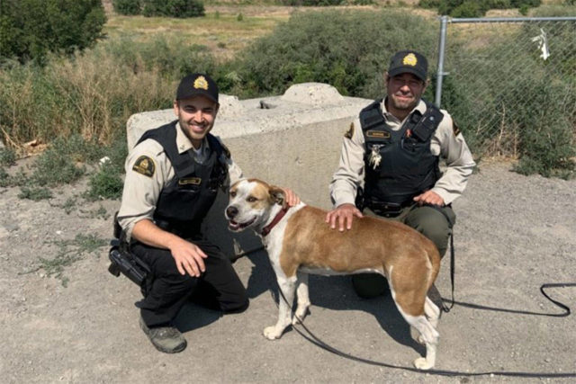 It happened during the patrol of two Department of Fisheries employees at 12 Mile Road during the evening of July 8 and the dog appeared at the side of the road.